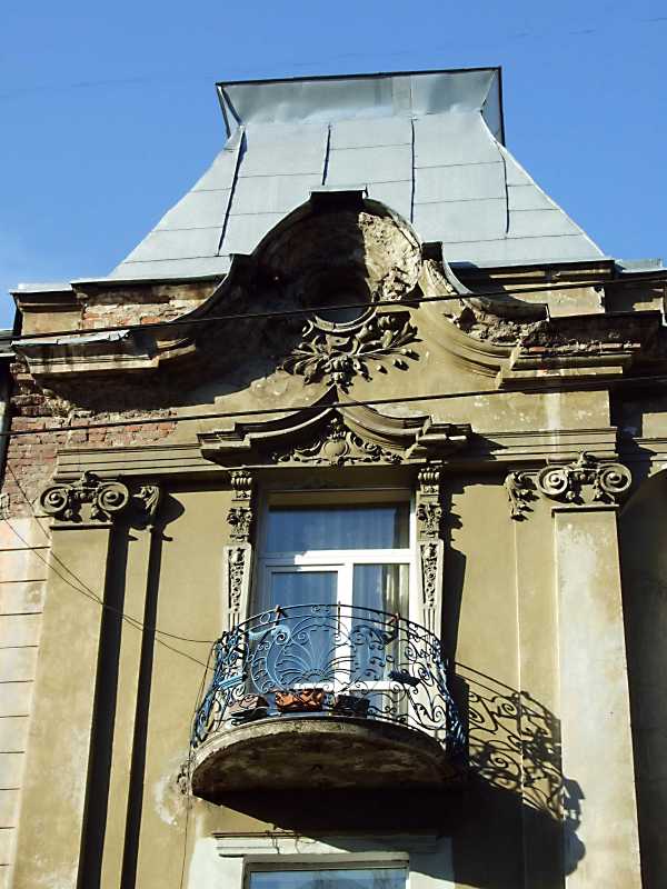 Балкон 3-го фоверху та фронтон Розмір зображення: 600:800 піксел 18 квітня 2013 р. Фото М.І.Жарких. Вище | Наступна сторінка