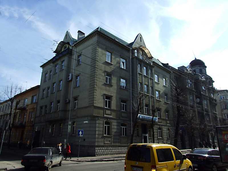 Житловий будинок (№ 15)Розмір зображення: 800:600 піксел Ліворуч – вулиця С. Палія, праворуч – вулиця Зелена. 16 квітня 2013 р. Фото М.І.Жарких. Будинок споруджено в 2000 році. Автор і головний архітектор проекту – Ігор Васильович Михальчук. |
