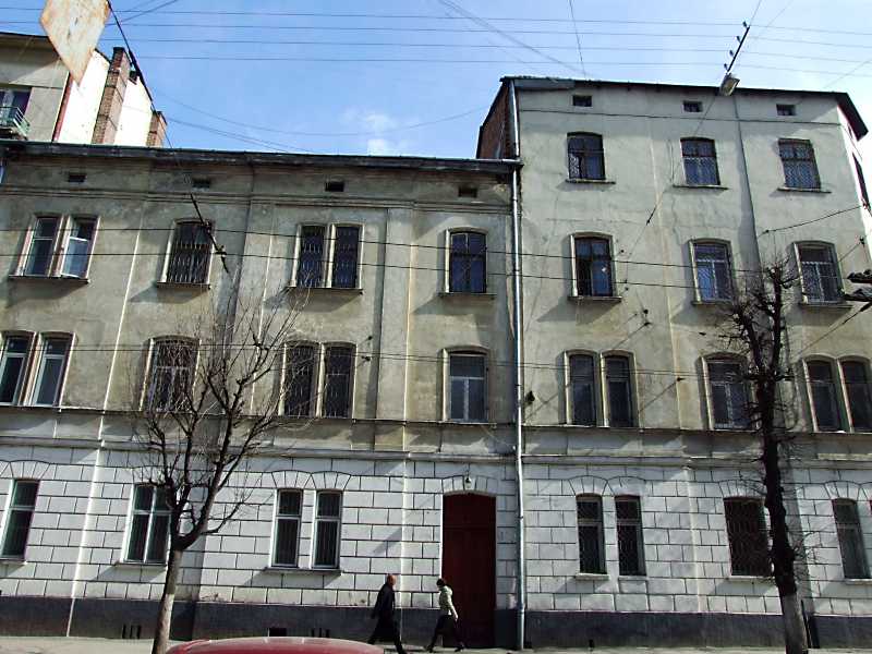 2013 р. Головний фасадРозмір зображення: 800:600 піксел Праворуч – будинок 23. 16 квітня 2013 р. Фото М.І.Жарких. |