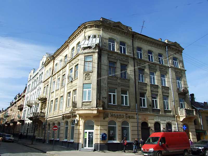 2013 р. Загальний виглядРозмір зображення: 800:600 піксел Ліворуч – вулиця Тарнавського, праворуч – вулиця Зелена. 16 квітня 2013 р. Фото М.І.Жарких. |