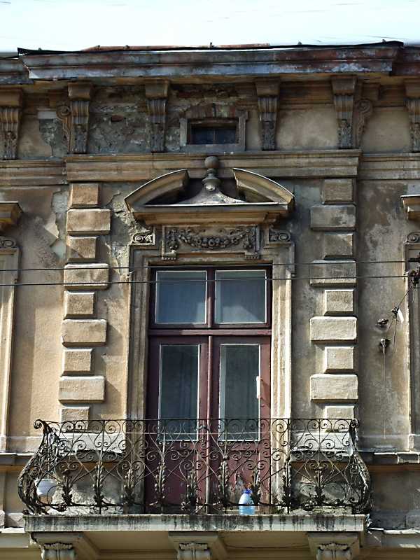 2013 р. Балкон 2-го поверху Розмір зображення: 600:800 піксел 16 квітня 2013 р. Фото М.І.Жарких. Вкладені елементи Фронтон над дверима балкону