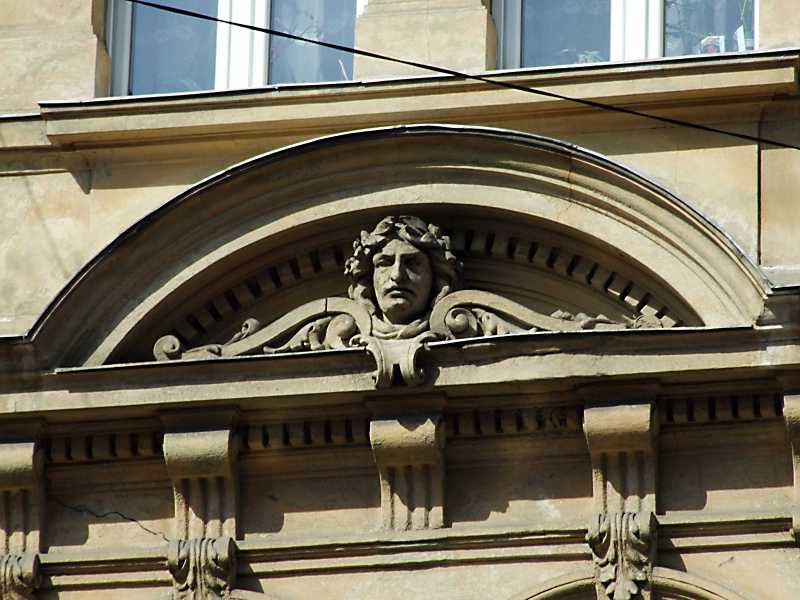 Рельєфний тимпан з маскароном Розмір зображення: 800:600 піксел 16 квітня 2013 р. Фото М.І.Жарких. Вище | Наступна сторінка