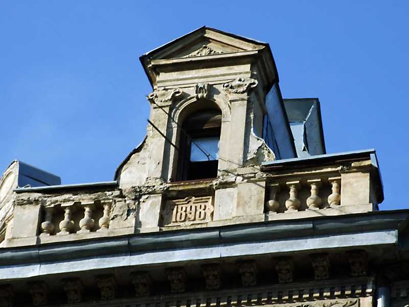 Фронтон з датою 1898 Розмір зображення: 800:600 піксел 18 квітня 2013 р. Фото М.І.Жарких. Вище | Наступна сторінка