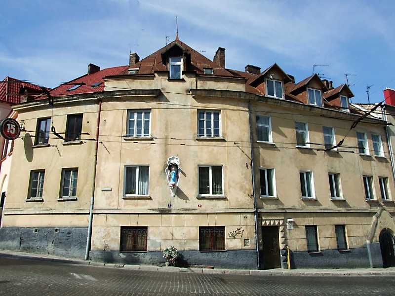 2013 р. Головний фасад Розмір зображення: 800:600 піксел 16 квітня 2013 р. Фото М.І.Жарких. Вкладені елементи Скульптура богородиці