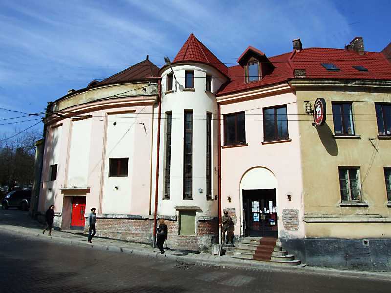 Будинок (№ 88) Розмір зображення: 800:600 піксел 16 квітня 2013 р. Фото М.І.Жарких. Вкладені елементи Скульптура невідомого призначення перед входом