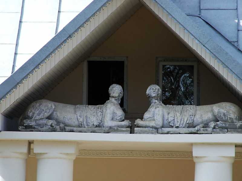 Скульптури сфінксів у тимпані Розмір зображення: 800:600 піксел 16 квітня 2013 р. Фото М.І.Жарких. Вище | Наступна сторінка