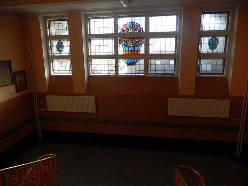 Вітраж сходової клітки Розмір зображення: 800:600 піксел Фото Ольги Соляр, 25 жовтня 2017 р. Вище | Наступна сторінка