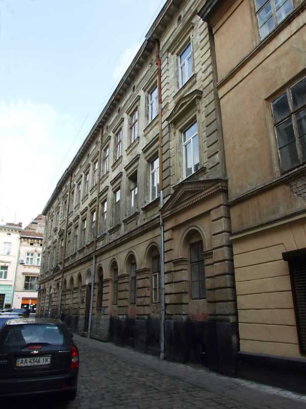 2012 р. Загальний вигляд з боку вул. Жижки Розмір зображення: 600:800 піксел 7 квітня 2012 р. Фото М.І.Жарких. Вкладені елементи Вікно 3-го поверху Вікно 2-го поверху Вхід