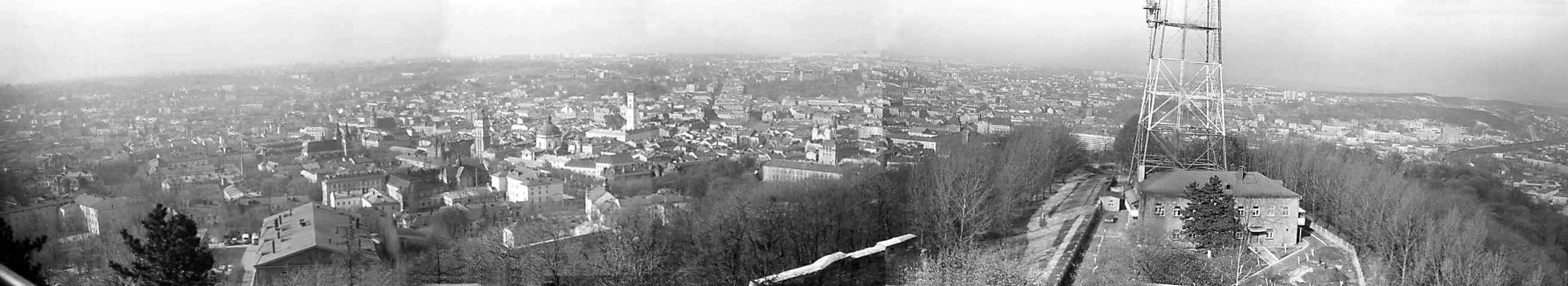 1976 р. Панорама міста з Високого замкуРозмір зображення: 2620:479 піксел 1976 р. 24 квітня. Фото М.І.Жарких. Негатека, № A114-02 .. 06. |