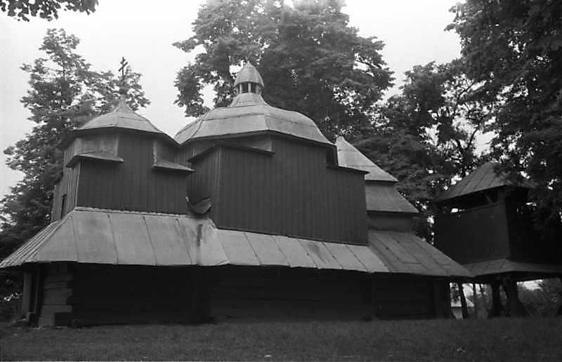 1989 р. Церква і дзвіниця. Вигляд з півночіРозмір зображення: 800:516 піксел 1989 р. 30 червня. Фото М.І.Жарких. Негатека, № 499-03. |