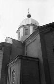 На південний захід від церкви розташована мурована стінна дзвіниця, завершена великим трикутним фронтоном, фланкованим двома маленькими. В її нижній частині розташовані два аркові прорізи для дзвонів, а у центральному фронтоні – один вужчий.