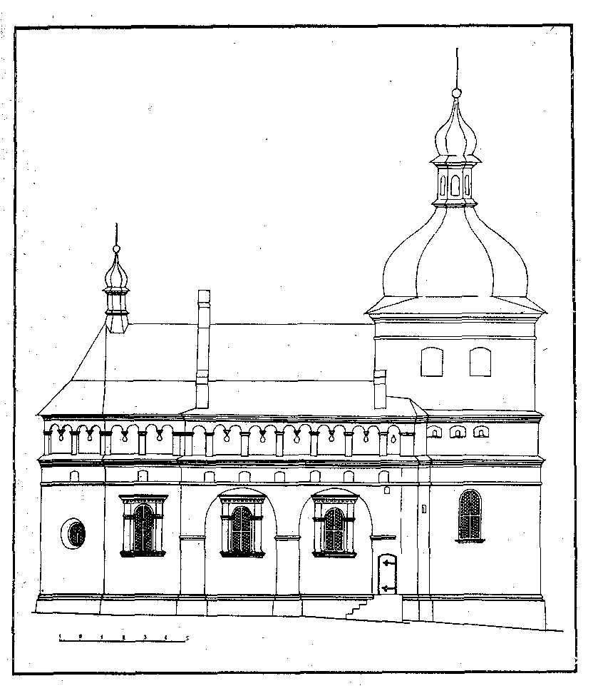Північний фасад церкви. Реконструкція станом на XVII ст. Розмір зображення: 832:968 піксел Вище | Наступна сторінка