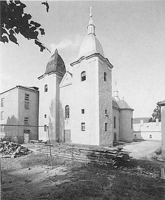1992 р. Загальний вигляд церкви з позиції А3Розмір зображення: 658:800 піксел Малий Березний. Відбудова монастиря. Світлина О. Іванусіва 1992 р. Джерело: Сирохман М. Церкви України: Закарпаття. – Льв.: 2000 р., с. 100. |