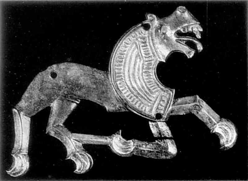 Бляшка 1Розмір зображення: 800:584 піксел Срібна бляшка у вигляді коня з Мартинівського скарбу на Київщині. VI ст. Державний історичний музей УРСР. Джерело: Історія українського мистецтва. – К.: Наукова думка, 1966 р., т. 1, с. 126. |