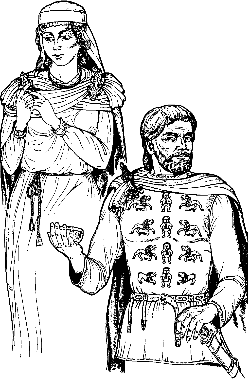 Жіночий і чоловічий одяг за матеріалами Мартинівського скарбу. Реконструкція О.М.Приходнюка та П.Л.Корнієнко