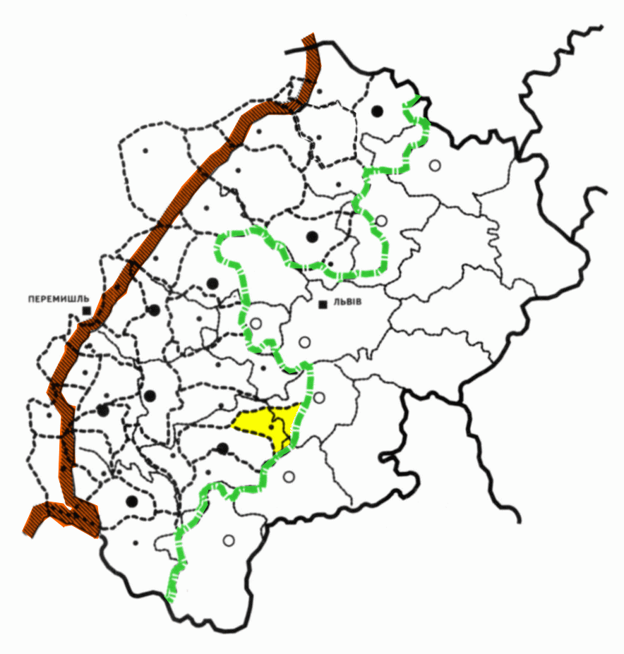 Деканат на карті Перемиської єпархіїРозмір зображення: 884:927 піксел Мединицький деканат На 1938 р. було 14 парафіяльних і 7 філійних церков. Джерело: Слободян В. Церкви України: Перемиська єпархія. – Льв.: 1998 р., с. 327. |