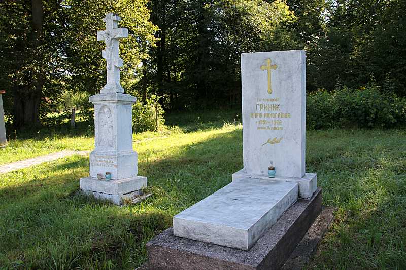 На фото моглиа – праворуч. Напис: «Тут спочиває Гриник Марія Миколаївна (1891 – 1966) Вічна їй пам’ять».