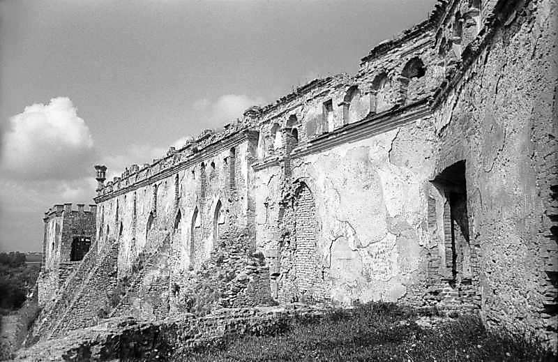 1978 р. Південний фасад в ракурсі. Вигляд зі сходу, з даху бастеїРозмір зображення: 800:519 піксел 1978 р. 29 травня. Фото М.І.Жарких. Негатека, № 058-11. |