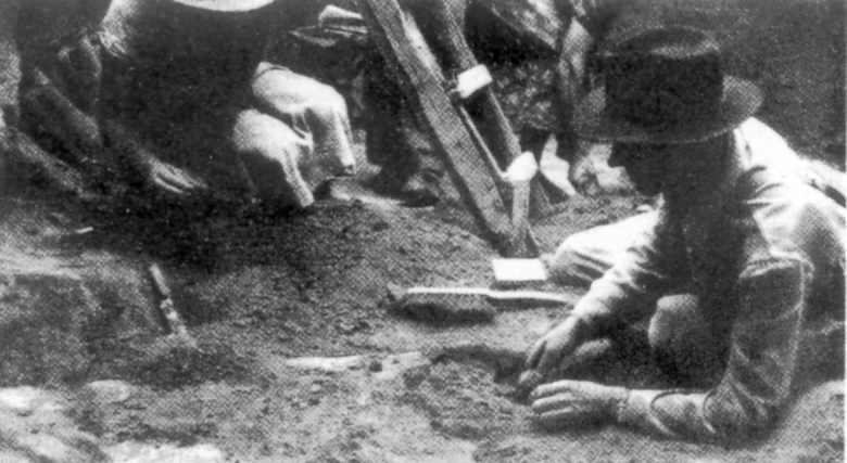 Розчистка накладки під час розкопокРозмір зображення: 780:427 піксел Джерело: Scythian gold: Museum of historic treasures of Ukraine. – S.l.: 1992, p. 54. |