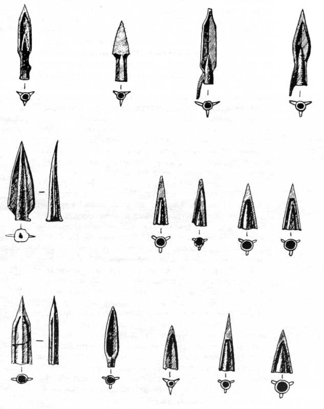 Бронзові наконечники стріл Розмір зображення: 633:800 піксел Джерело: Пам’ятки України, 2002 р., № 2, с. 31. Попередня сторінка | Вище | Наступна сторінка