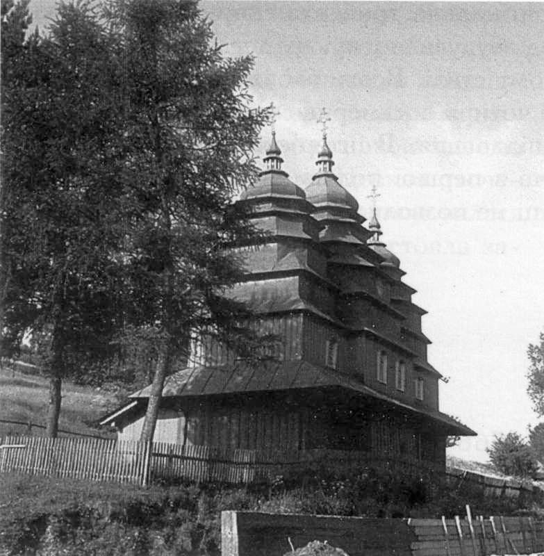 Це теж триверхий тризрубний храм в бойківському стилі. Верхи бабинця і вівтаря – четверик і три восьмерики та нави – четверик і чотири восьмерики вінчають бані з ліхтарями і маківками. Церкву оточує широке піддашшя. В інтер’єрі зберігаються ікони пензля Марка Домажирського-Шестаковича з першої половини XVIII ст. У 1960 – 1989 pp. церква стояла зачиненою, мешканці не позволили перетворити її в клуб.