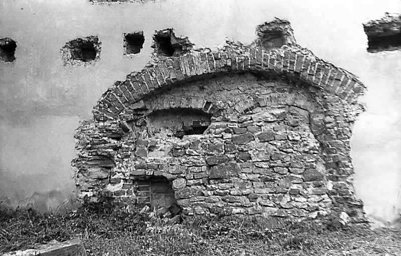 1976 р. Східний мур. Замурована фіртка. Вигляд з боку дворуРозмір зображення: 800:512 піксел 1976 р. 10 червня. Фото М.І.Жарких. Негатека, № A135-05. |