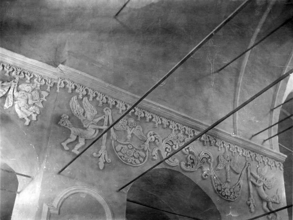 фрагмент склепіння в інтер’єріРозмір зображення: 960:720 піксел Фото Стефана Таранушенка і Павла Жолтовського з експедиції Харківського музею українського мистецтва. 1920-і рр. (?) Опубліковано 4.07.2019 р. |