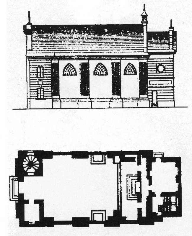 Фасад та план церкви св. арх. Михайла. За: Krasny Р. Cerkwie neogotyckie ostatni etap…