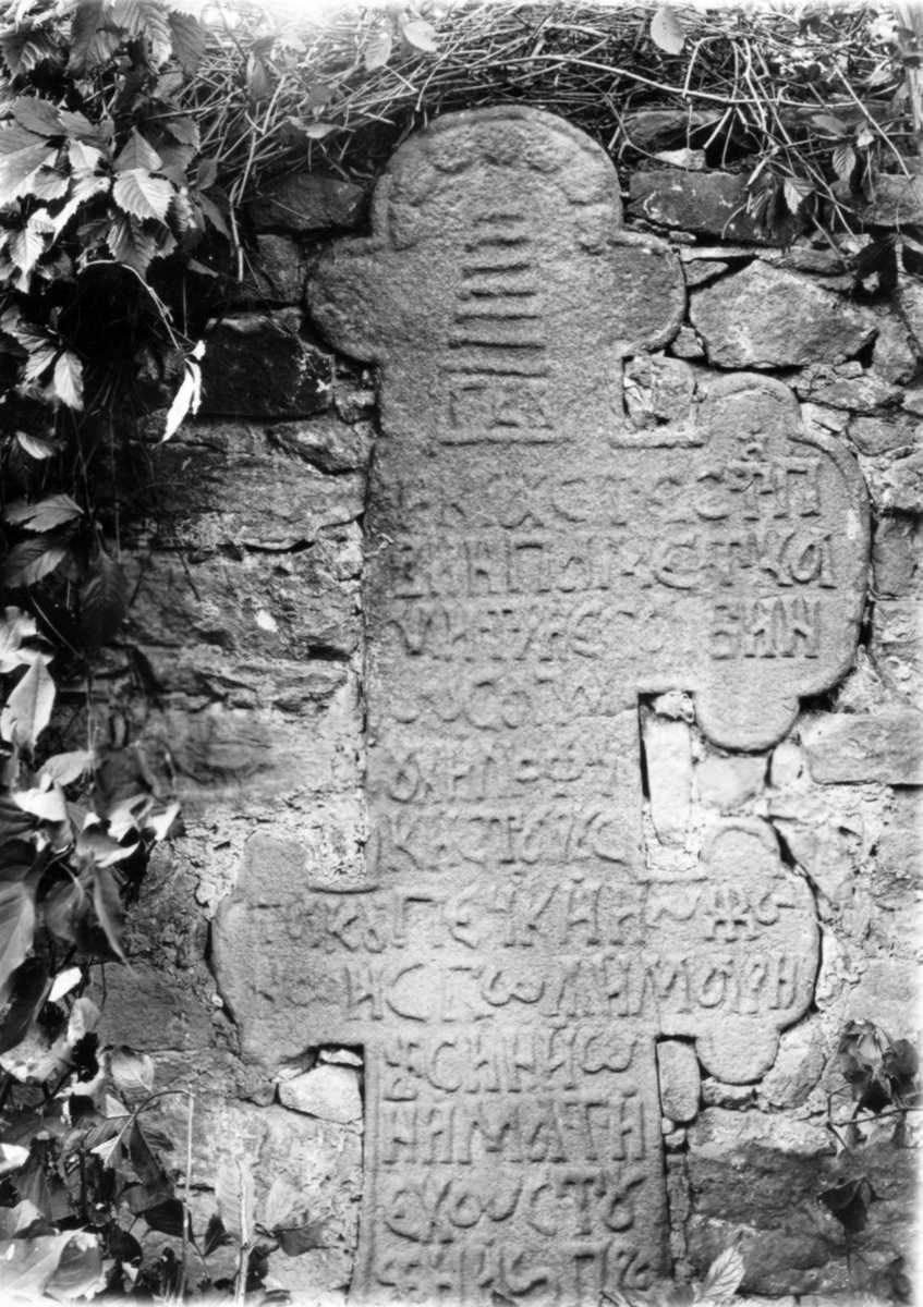 Напис читається досить погано, до того ж бракує лівого рамена хреста.