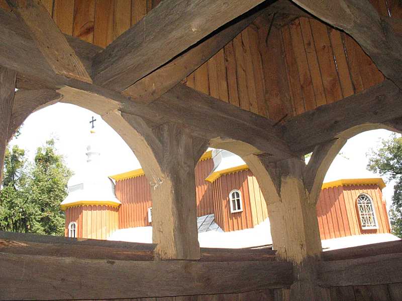 Вид із дзвіниця на церквуРозмір зображення: 800:600 піксел Фото Зенона Боровця і Богдана Тхора, 6 серпня 2010 р. |