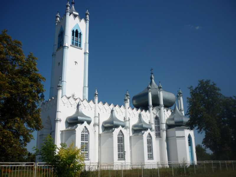 ПРЕОБРАЖЕНСКАЯ ЦЕРКОВЬ, 1830-1840 гг. Построена по проекту архит. Торичелли в стиле романтизма с использованием элементов тюдоровской готики.