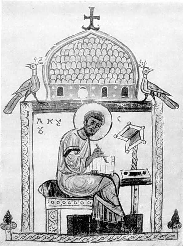 Євангеліст Лука. Мініатюра з Добрилова євангелія. 1164 р. Державна бібліотека СРСР ім. В. І. Леніна (Москва).