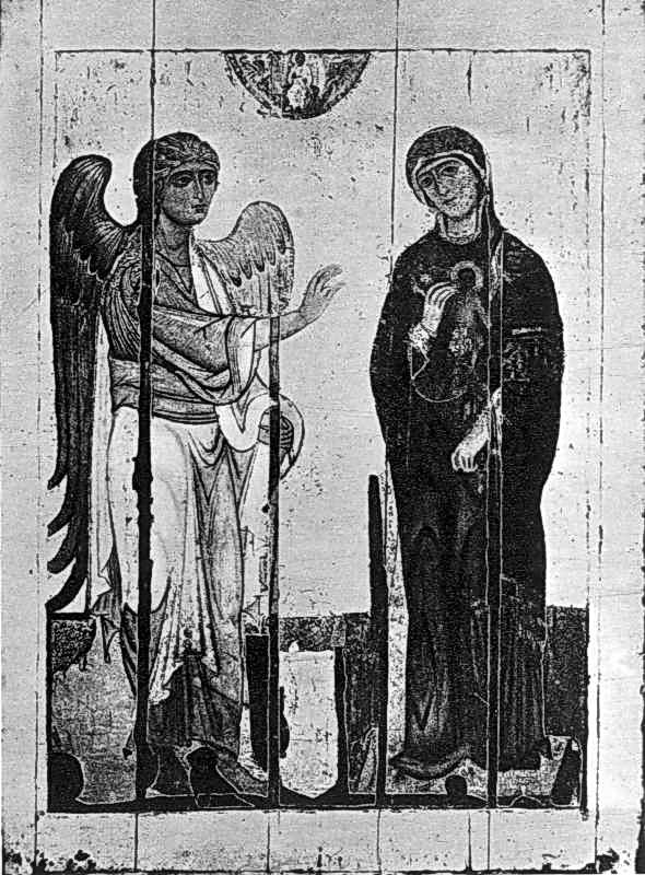 Загальний виглядРозмір зображення: 590:800 піксел Устюзьке благовіщення. 12 ст. Москва, Третьяковська галерея. Джерело: Mole W. Ikona ruska. – Warszawa: Sztuka, 1956. |