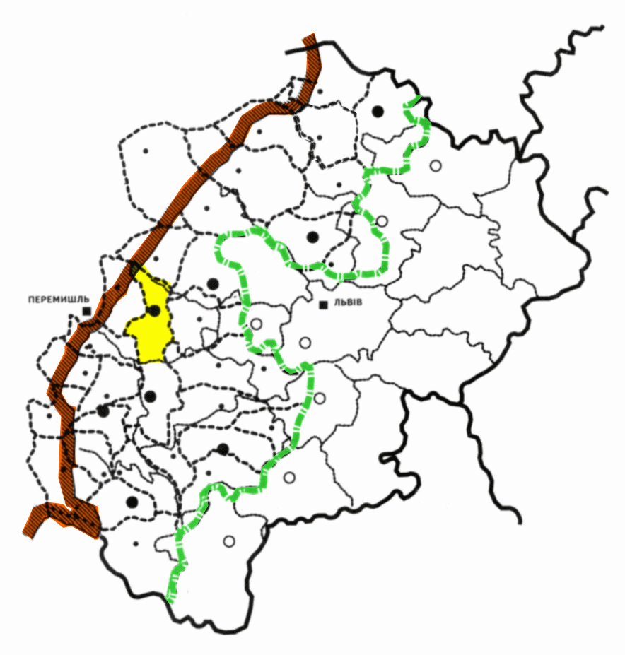 Деканат на карті Перемиської єпархіїРозмір зображення: 884:927 піксел Мостиський деканат На 1938 р. було 17 парафіяльних і 15 філійних церков. Джерело: Слободян В. Церкви України: Перемиська єпархія. – Льв.: 1998 р., с. 359. |