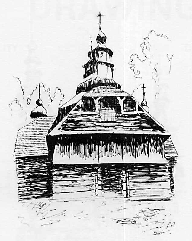 Загальний вигляд з позиції С3Розмір зображення: 636:800 піксел Мшана Успення Пречистої Богородиці 1865 Дукля Рисунок Р.Раделицького. Церква зруйнована. Джерело: Іванусів О. Церква в руїні. – St. Catharines, 1987, с. 308. |