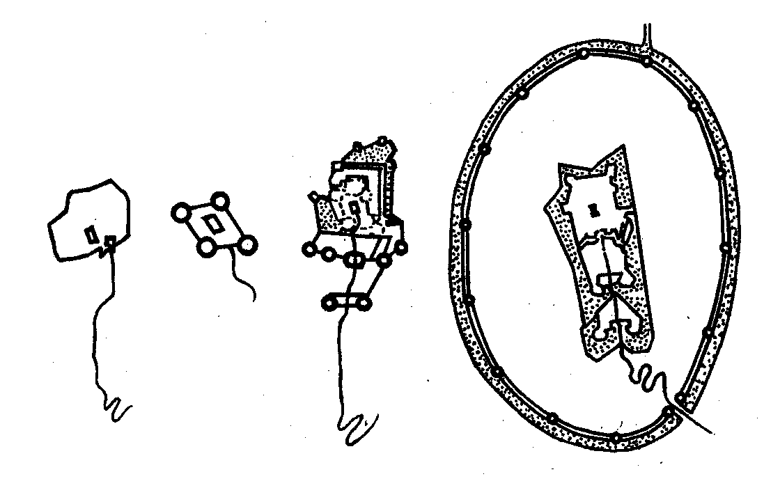 Развитие строительства Мукачевского замка. XIII—XVII вв.Розмір зображення: 1097:701 піксел [Поп И.И., Поп Д.И. В горах и долинах Закарпатья. – М.: Искусство, 1971 г., с. 46]. |