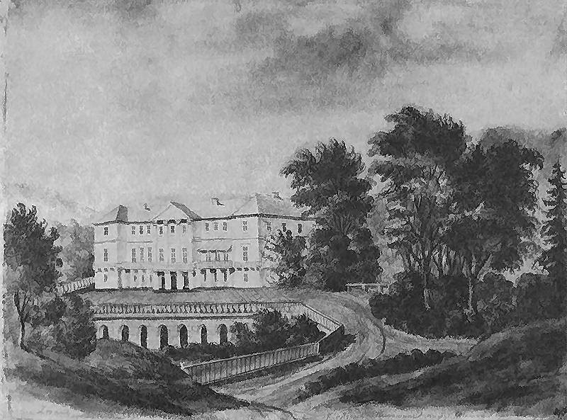 Pałac Komarów. Widok od strony ogrodu. Pałac trzykondygnacjowy z ryzalitami, portykiem kolumnowym w wielkim porządku i tarasem pierwszego piętra wspartym na kolumnach obiegających elewację; przed tarasem taras ziemny i arkadowy mur oporowy. Dat.: 14 Lipca. Napis: rzeka Żwan; Czychaczew Nicolas; Kuryłowce Murowane niegdyś Własność Komarów Alexan.; napis na podkładzie: Kuryłowce Murowane Podole. 1871-1873. Rys. ołówkiem podmalowany akwarelą. 20 x 27,8 cm. Muzeum Narodowe, Kraków. III-r.a. 2987. (Teka Podole). [Katalog rysunków architektonicznych ze zbiorów Muzeum narodowego w Krakowie. 1. Rysunki Napoleona Ordy / Opracowały Zofia Kucielska i Zofia Tobiaszowa. – Warszawa: Państwowe wydawnictwo naukowe, 1975, Nr. 368]