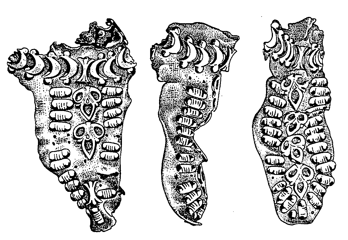 Прикраси 9 ст. з с.АнтонівРозмір зображення: 1210:837 піксел Бронзові прикраси шкіряного взуття з поховання печеніжки останньої чверті IX ст. біля с.Антонів Миколаївської обл. Джерело: Історія української культури. – К.: 2001 р., т. 1, с. 1005. |