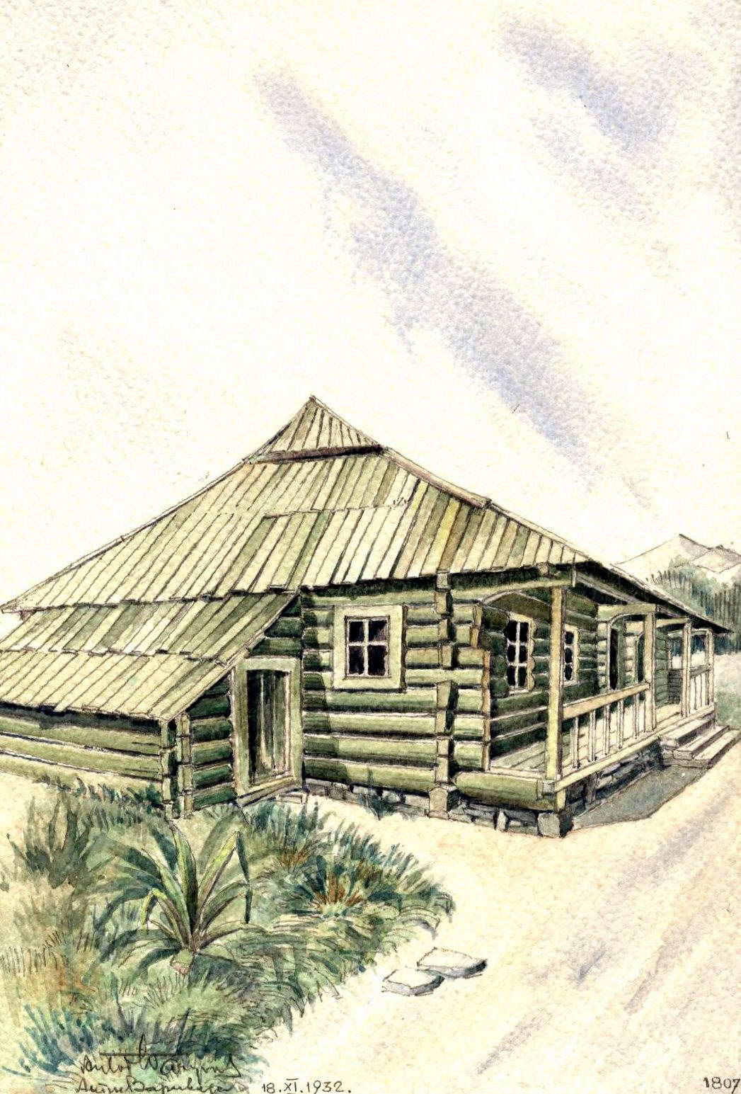 1932 р. Хата. Загальний виглядРозмір зображення: 1047:1545 піксел Рисунок Антона Вариводи (Краків), 18.11.1932 р. 1807 Dwelling, Mykulychyn (Mikuliczyn), Yaremche, Ukraine. Southwestern view. |