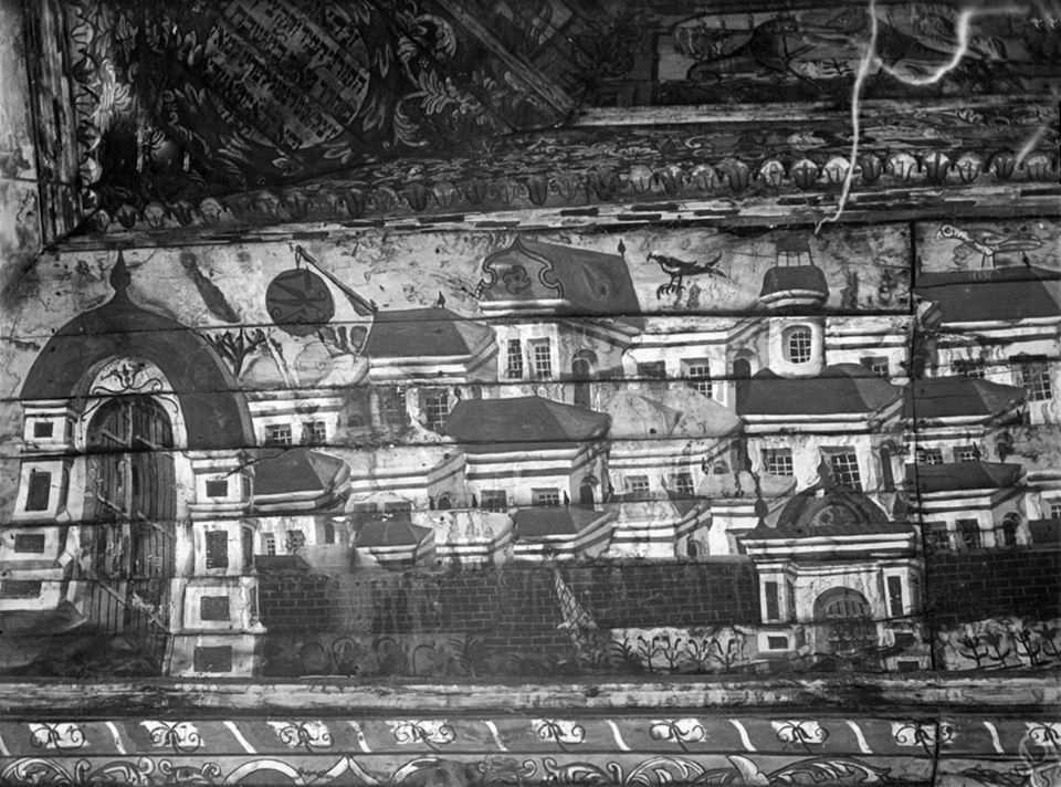 Фрагмент стінопису (вид Єрусалима)Розмір зображення: 960:712 піксел Фото Стефана Таранушенка і Павла Жолтовського з експедиції Харківського музею українського мистецтва. 1920-і рр. (?) Опубліковано 5.11.2019 р. |
