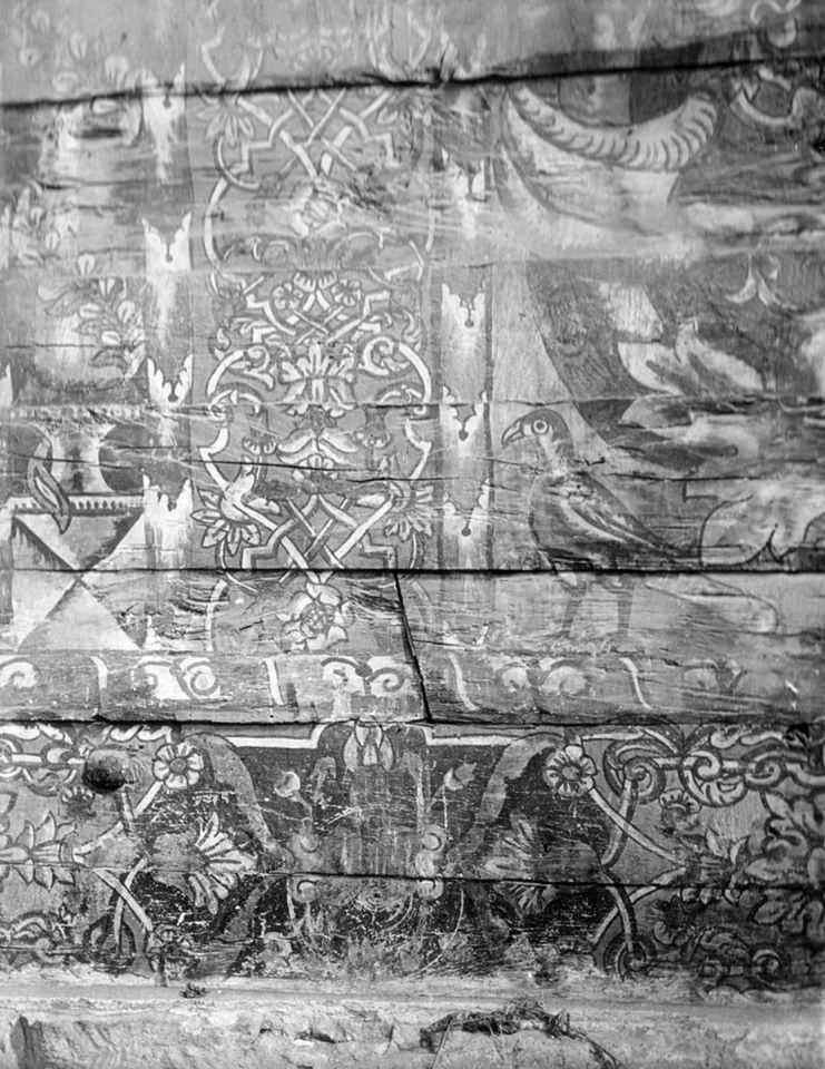Фрагмент стінопису (орнамент; птах – символ?)Розмір зображення: 741:960 піксел Фото Стефана Таранушенка і Павла Жолтовського з експедиції Харківського музею українського мистецтва. 1920-і рр. (?) Опубліковано 5.11.2019 р. |
