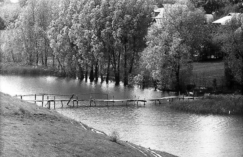1983 р. Краєвид зі ставом і кладкоюРозмір зображення: 800:519 піксел 1983 р. 11 травня. Фото М.І.Жарких. Негатека, № 193-29. |