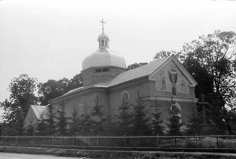 Церква ПокровиРозмір зображення: 800:540 піксел Церква Покрови розташована в центрі села на головній вулиці, на цвинтарі. Вівтарем вона орієнтована на схід. Дзвіниця з металевих труб збудована в 1989 р. Спостереження М.І.Жарких, 12.08.1989 р. |