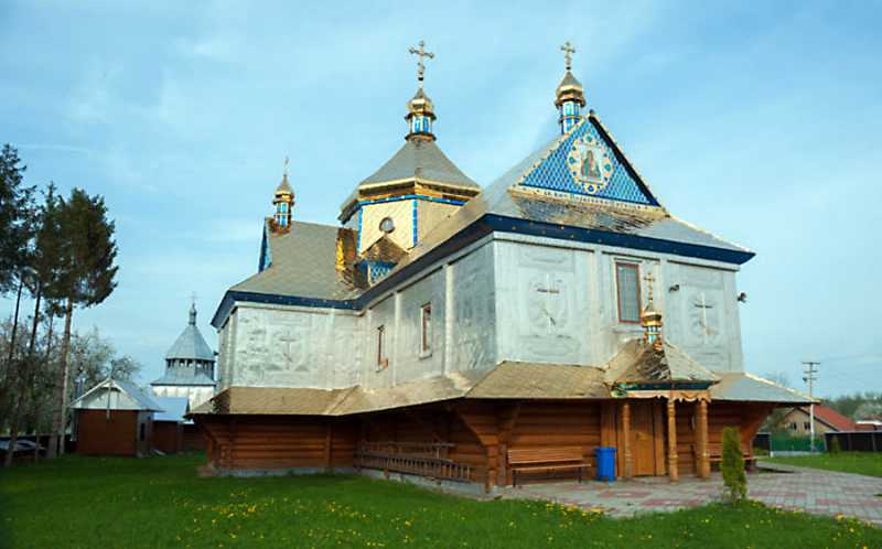Эталонная «бляшанка». Здесь вам и белая бляха, и желтенькая, и голубенькая… Храм Св. Великомученицы Параскевы Пятницы в селе Мишин Коломыйского р-на, 1837 г. УАПЦ