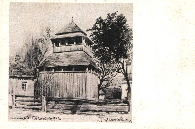 Дзвіниця церкви Різдва Пр. Богородиці в Мизові. Автор Петро Фетісов, 1916 р.