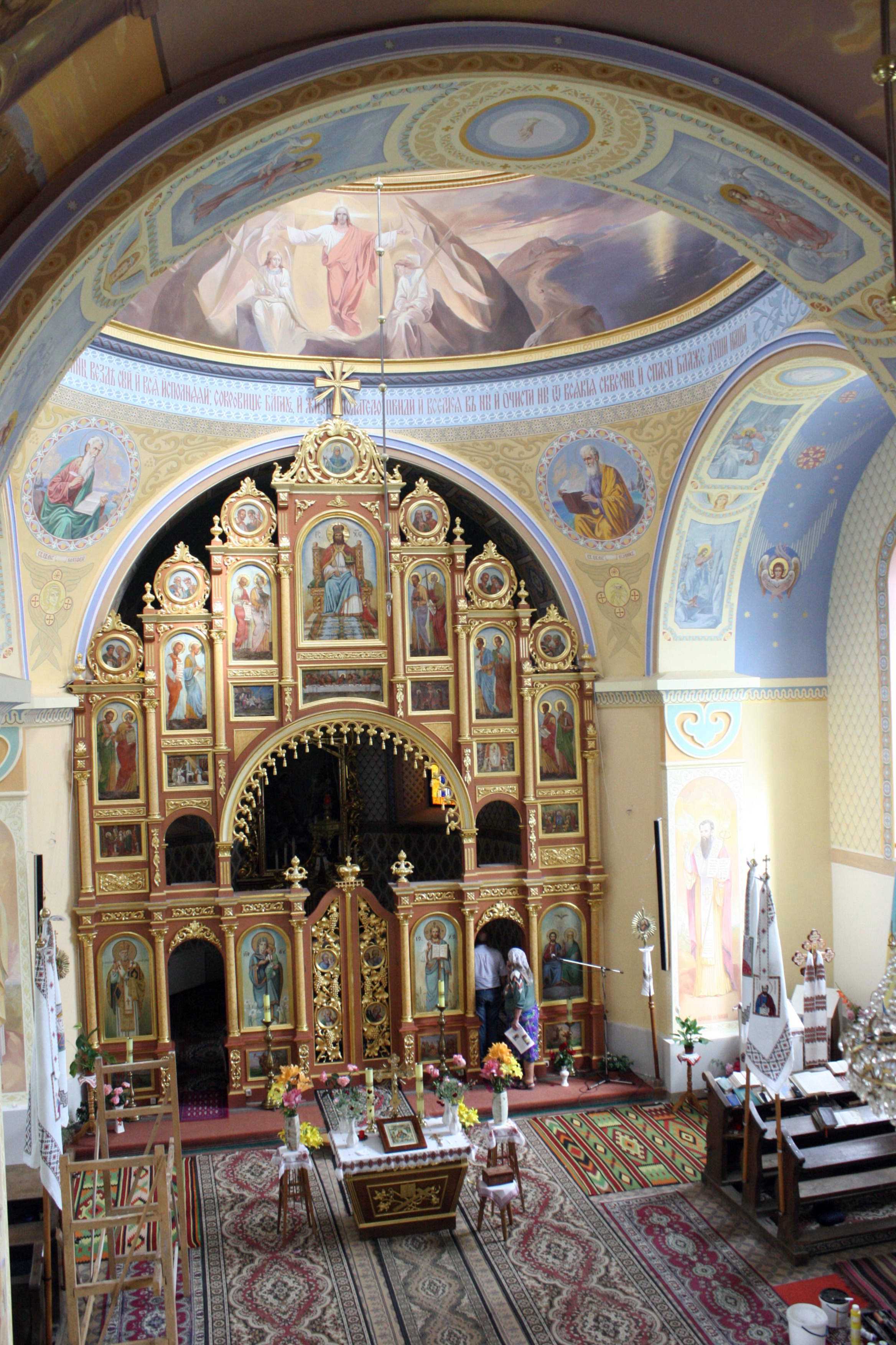 Іконостас. Вигляд з хорів з лівого бокуРозмір зображення: 2336:3504 піксел Фото Зенона Боровця і Богдана Тхора, 9 липня 2014 р. |