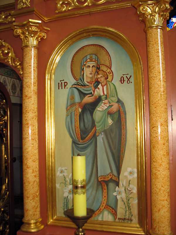 Ікона «Богородиця провідниця»Розмір зображення: 600:800 піксел Фото Зенона Боровця і Богдана Тхора, 9 липня 2014 р. |