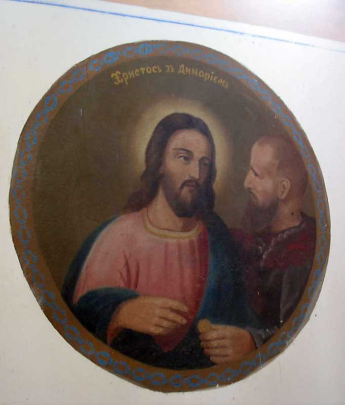 Стінопис «Кесарю – кесареве»Розмір зображення: 681:800 піксел Фото Зенона Боровця і Богдана Тхора, 9 липня 2014 р. |