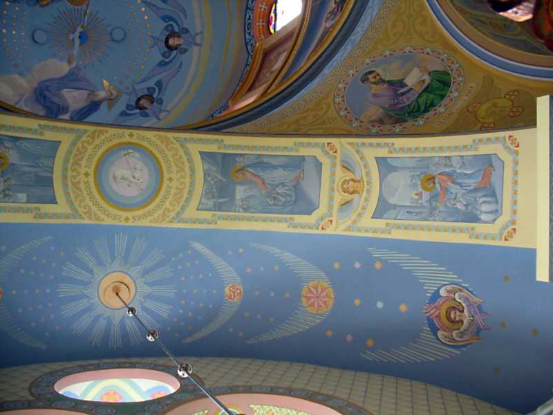 Стінопис підпружної арки Розмір зображення: 800:600 піксел Фото Зенона Боровця і Богдана Тхора, 9 липня 2014 р. Вкладені елементи Зцілення розслабленого Шлюб у Кані Галілейській