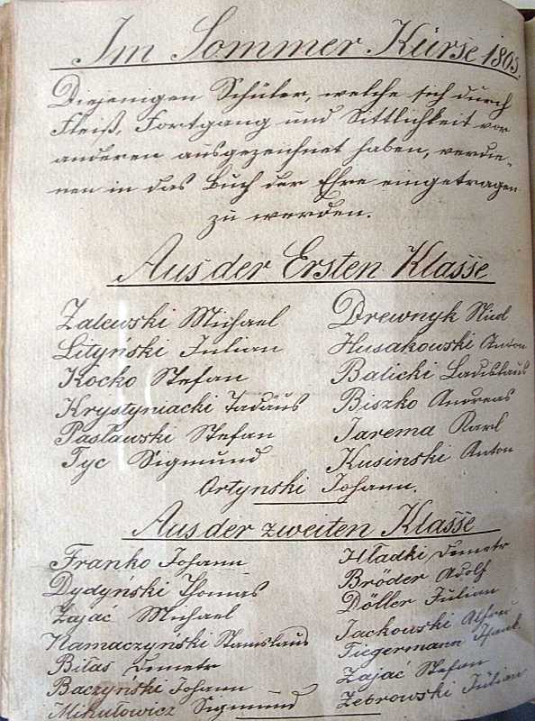 Сторінка переліку (І. франко – перший у 2-у класі)